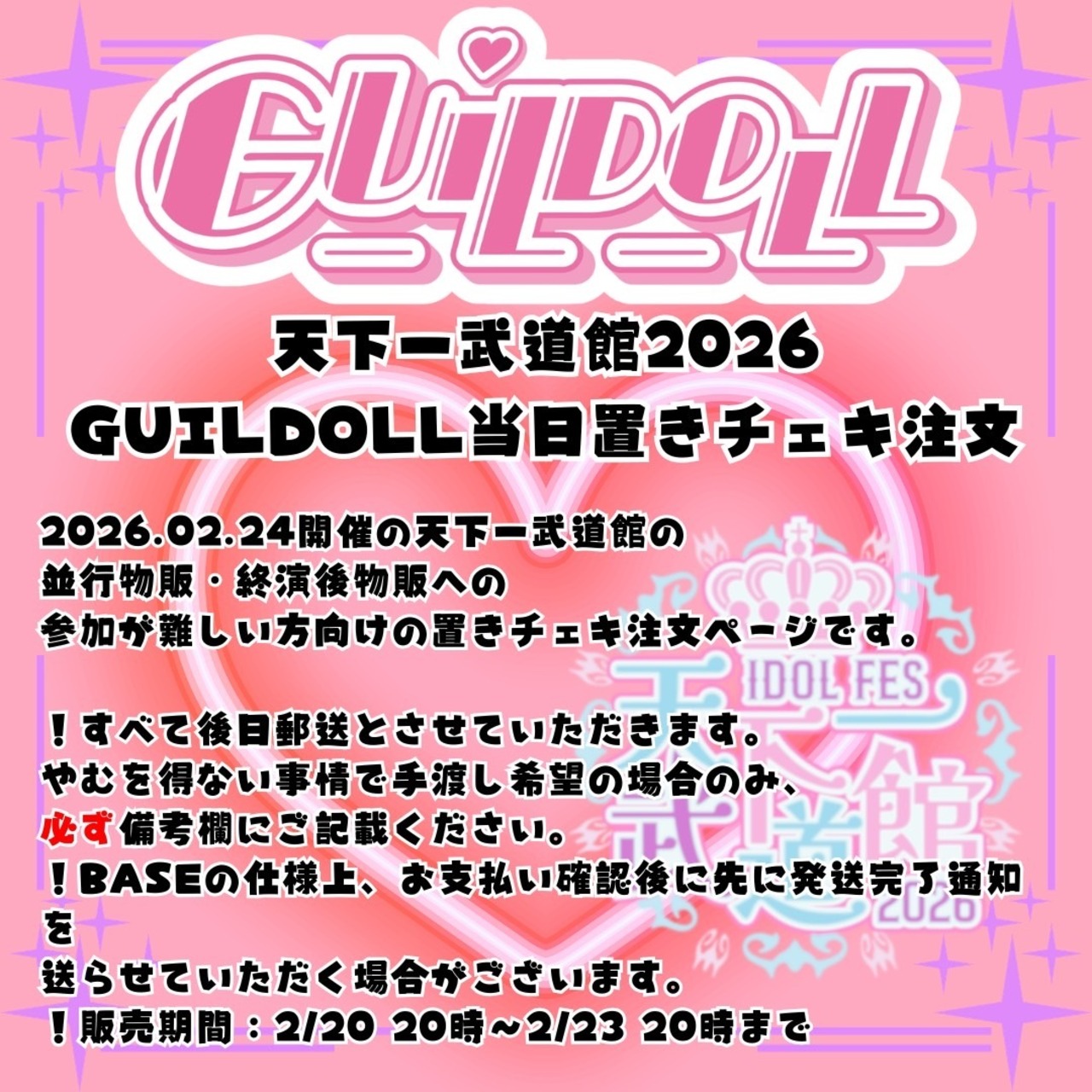 2026.02.24開催の天下一武道館の並行物販・終演後物販に参加が難しい方向けの置きチェキ注文ページです。